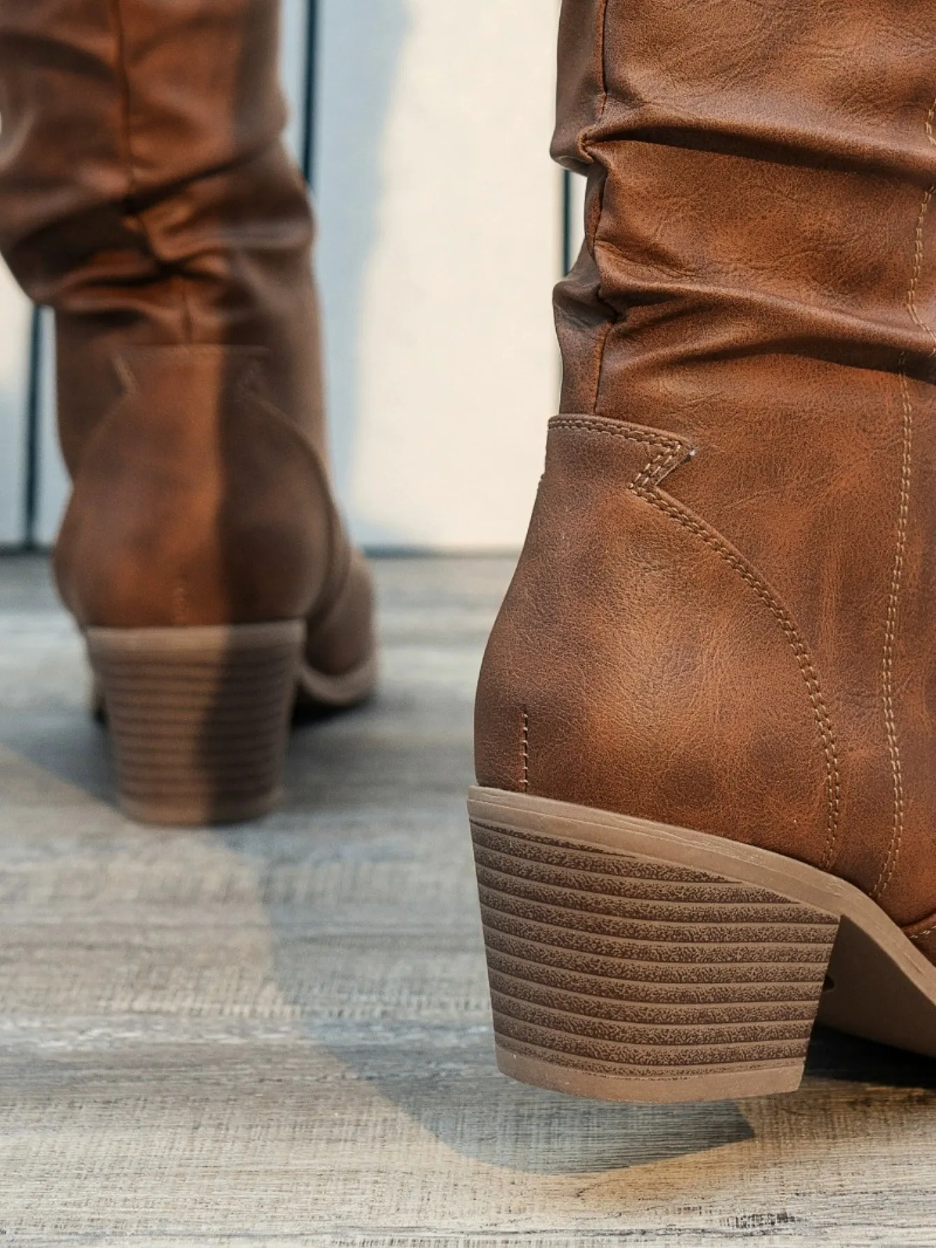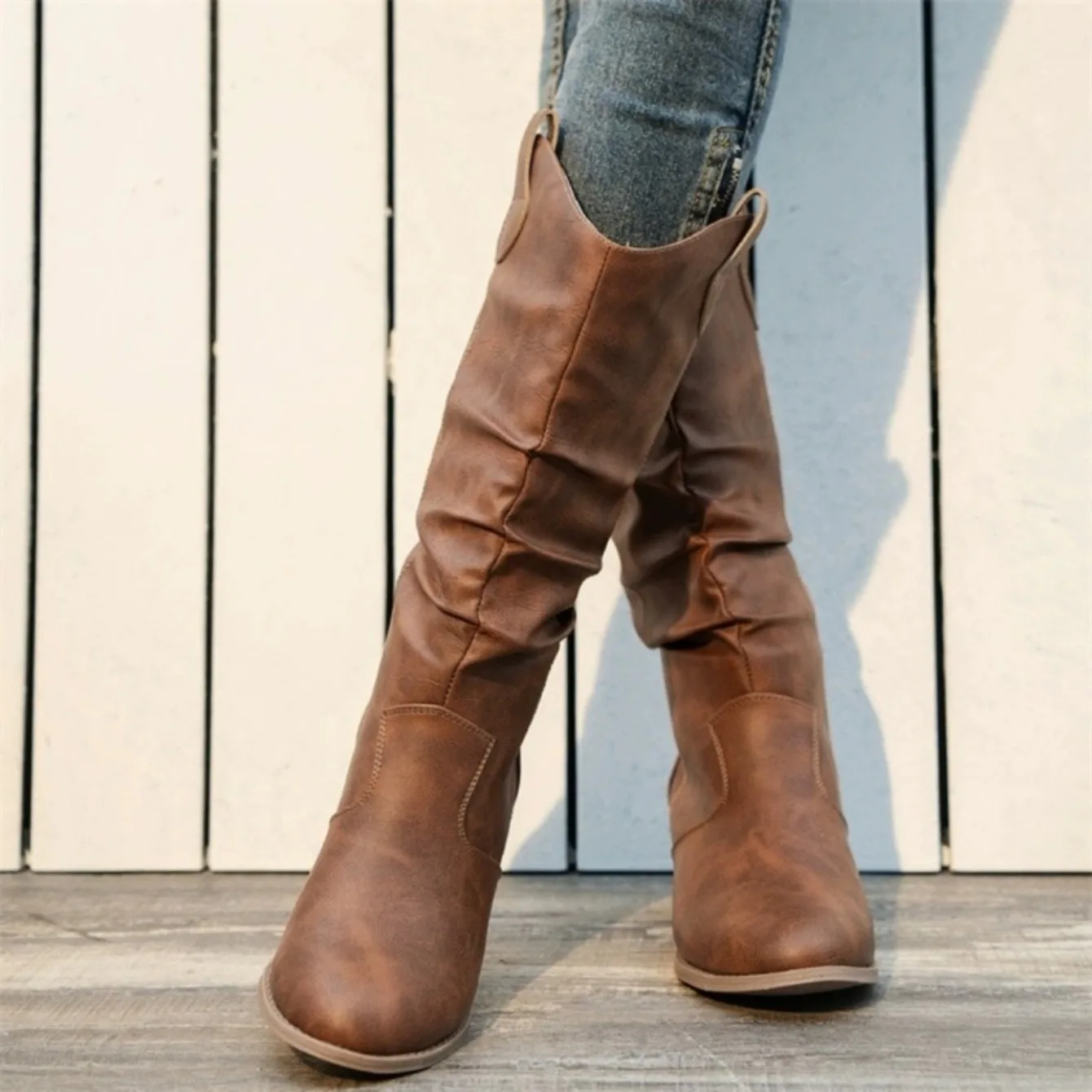 2024 New Autumn Winter Shoes for Women Slip-on Fashion Women Boots Sewing Daily Round Toe Square Heel Boots Women Botas De Mujer