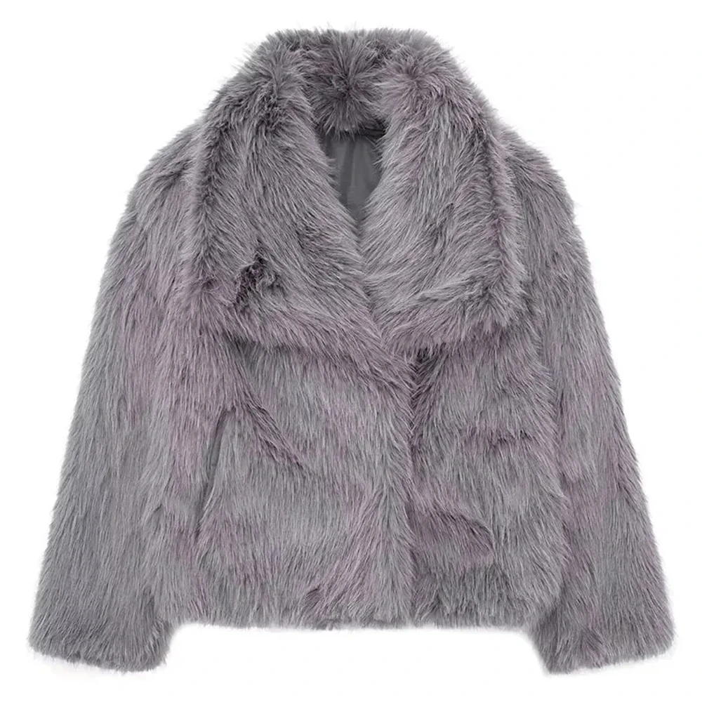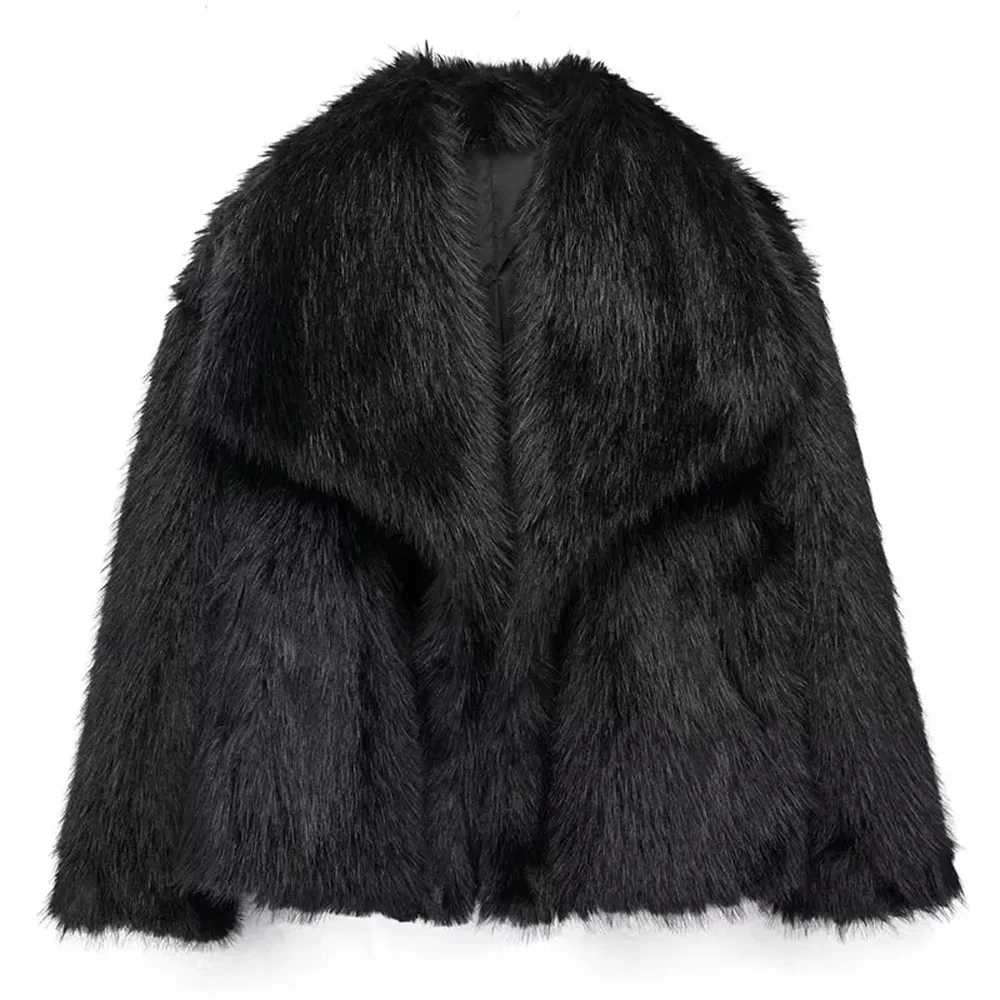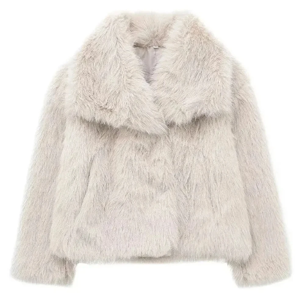 HH Winter Women Elegant Warm Plush Coat Turn-Down Collar Thick Cardigan Coat Female Pocket Long Sleeve Short Outerwear Mujer
