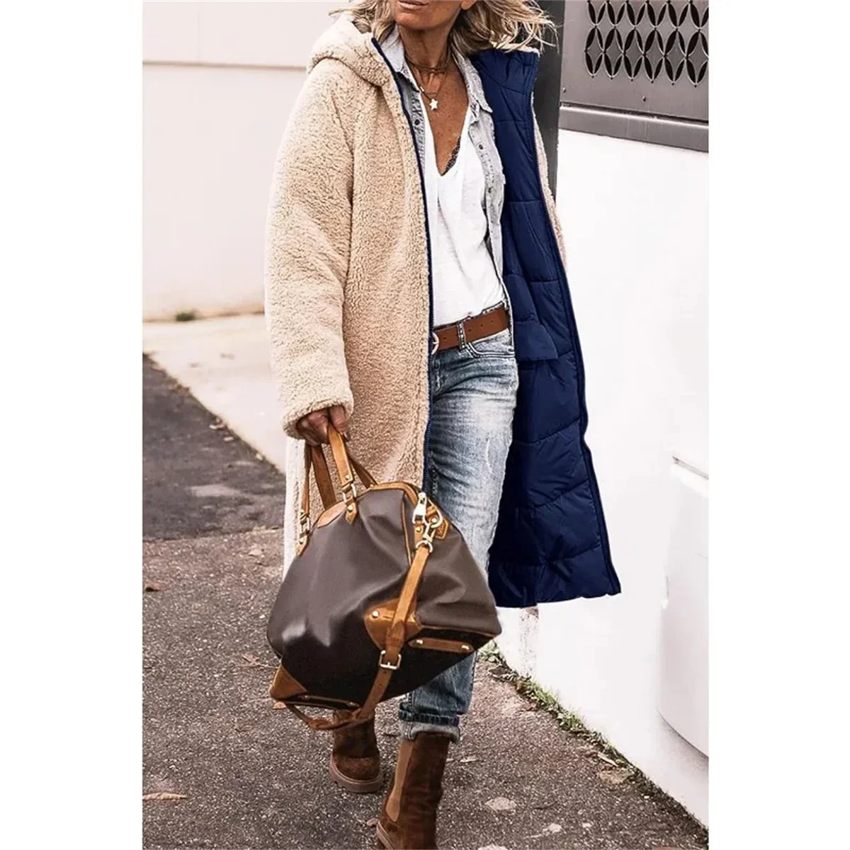 Winter Hooded Quilted Jacket For Women Solid Reversible Long Sleeve Thick Coat Warm Fashion Long Outerwear Casual Puffer Coats