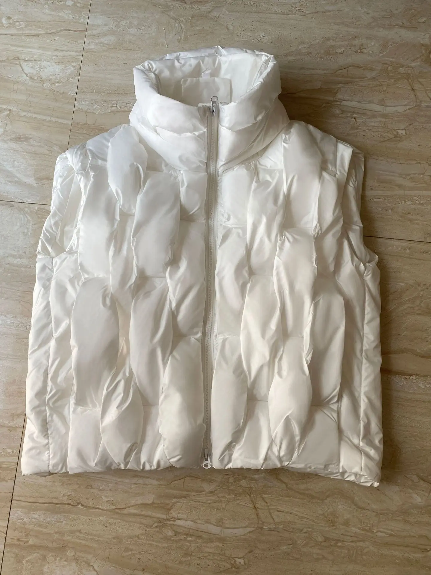 Winter Vest for Women Three-dimensional Plaid Woven Fashion Sleeveless Coat Solid High Street Warm Thick 2024 Waistcoat Jacket
