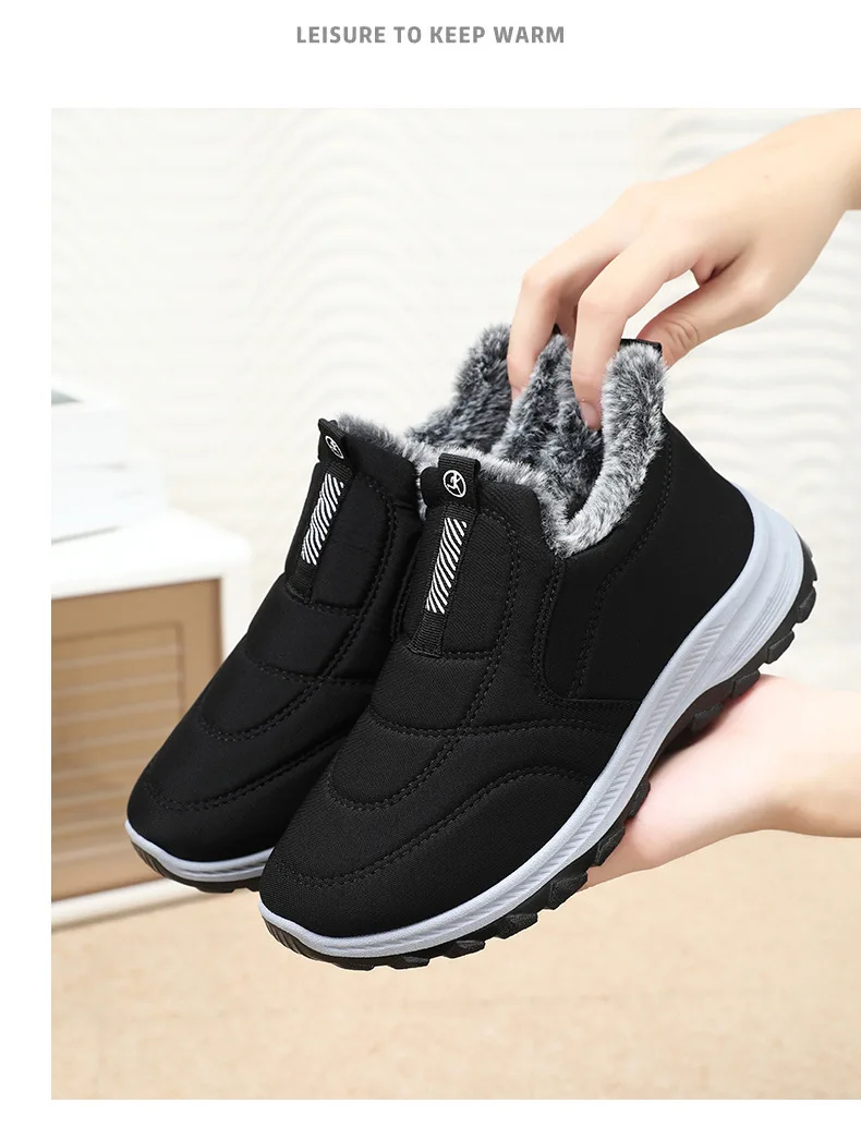 Women's Boots 2025 Winter Shoes For Women Ankle Boots Warm Fur Botas Mujer Waterproof Low Heels Snow Boots Winter Flat Shoes